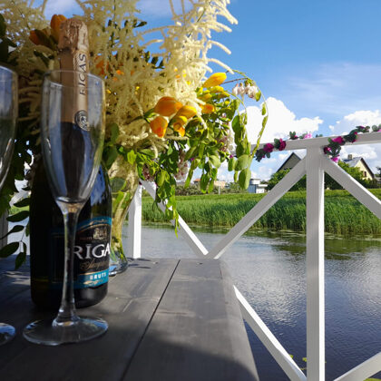 12 people can be on board of the raft at a time. Boarding at the pier next to the Carnikava Regional Research Museum - 7 Jomas Street, Carnikava.